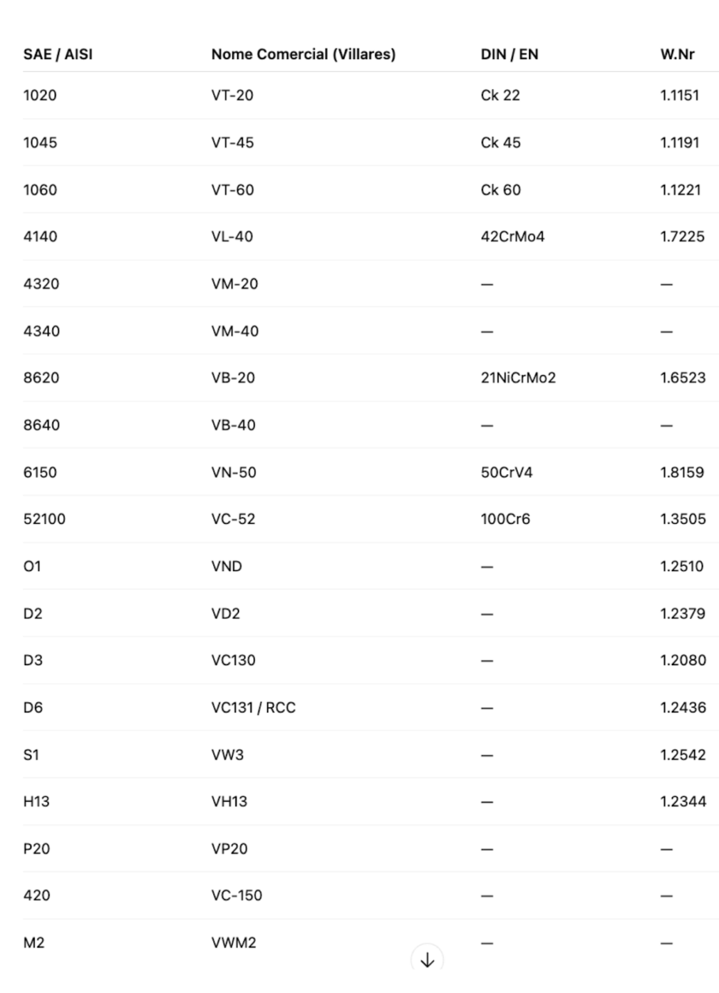 Como ler e usar corretamente a tabela de equivalência de aços